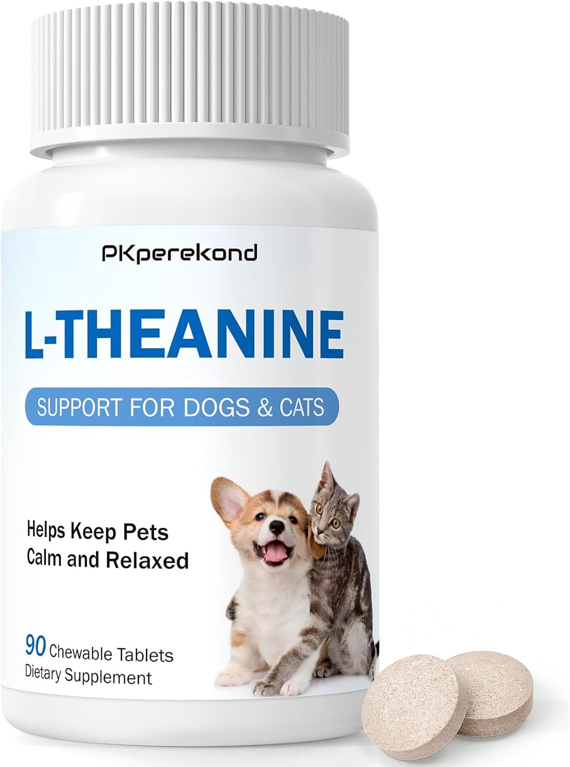 L-Theanine Supplement for Dogs and Cats, 50mg, 90 Chewable Tablets, Helps Keep Pets Calm & Relaxed