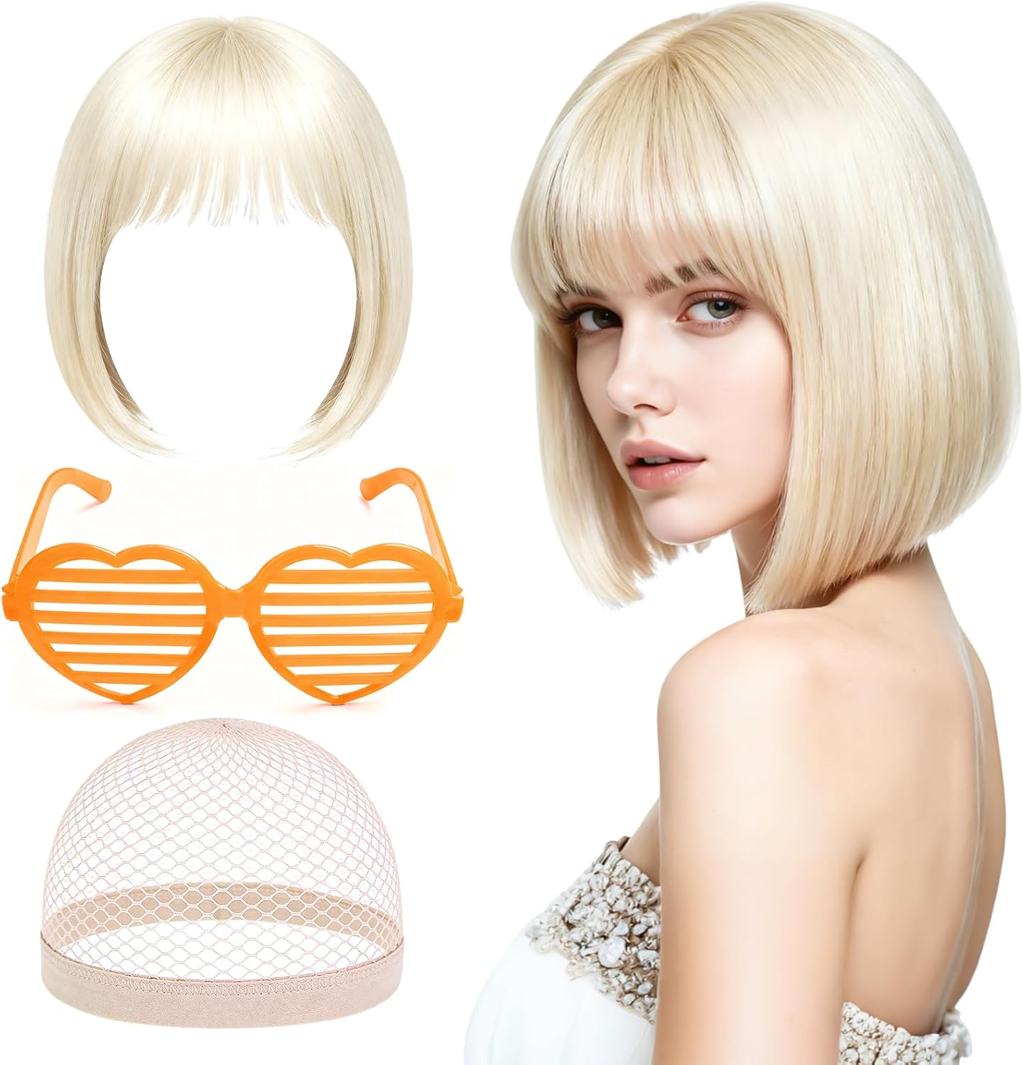 Women’s Carnival Wig Blonde Wigs – Wig Helmet Kit with Coloured Glasses and Wig Cap
