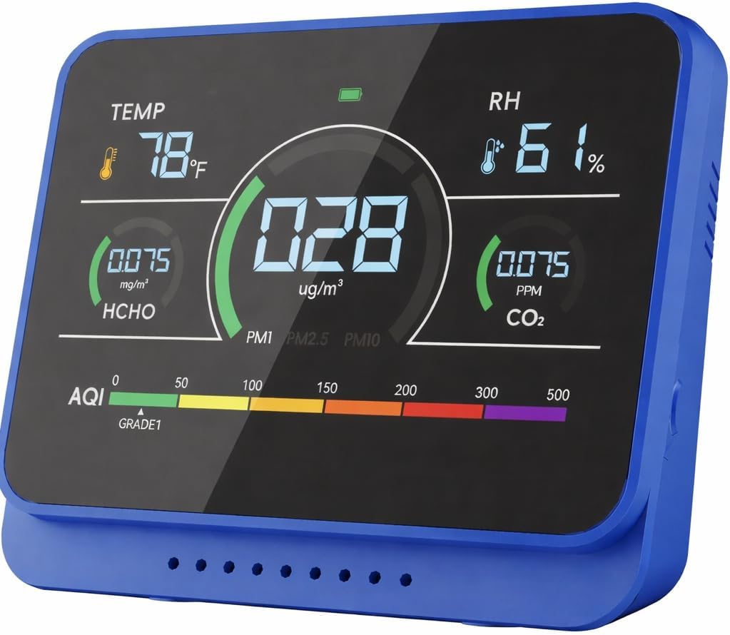 Xoopon 13-in-1 Indoor Air Quality Monitor with Beep Alarm & 3000mAh Battery