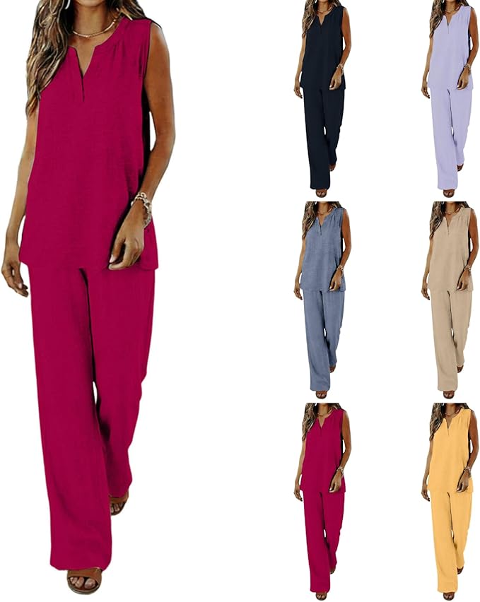 Linen Sets For Women 2 Piece Sleeveless Tops
