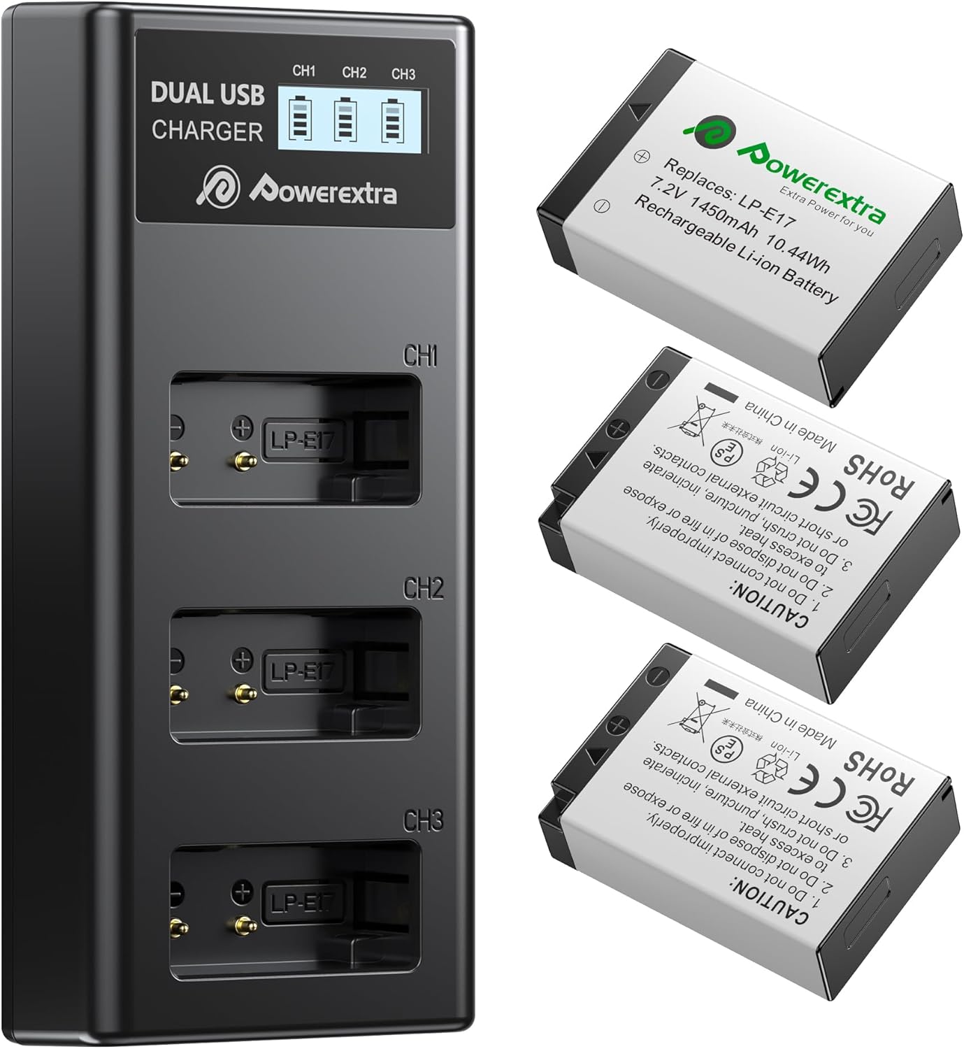 LP-E17 Battery (3 Pack1450mAh) and Upgraded 3-Slot LCD Charger Compatible with Canon EOS
