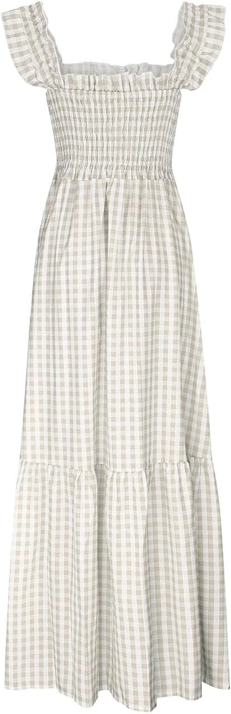 Gingham Maxi Dresses for Women Maternity Sundress Long Sleeveless Flowy Dresses with Ruffle Sleeve Resort Wear 2026