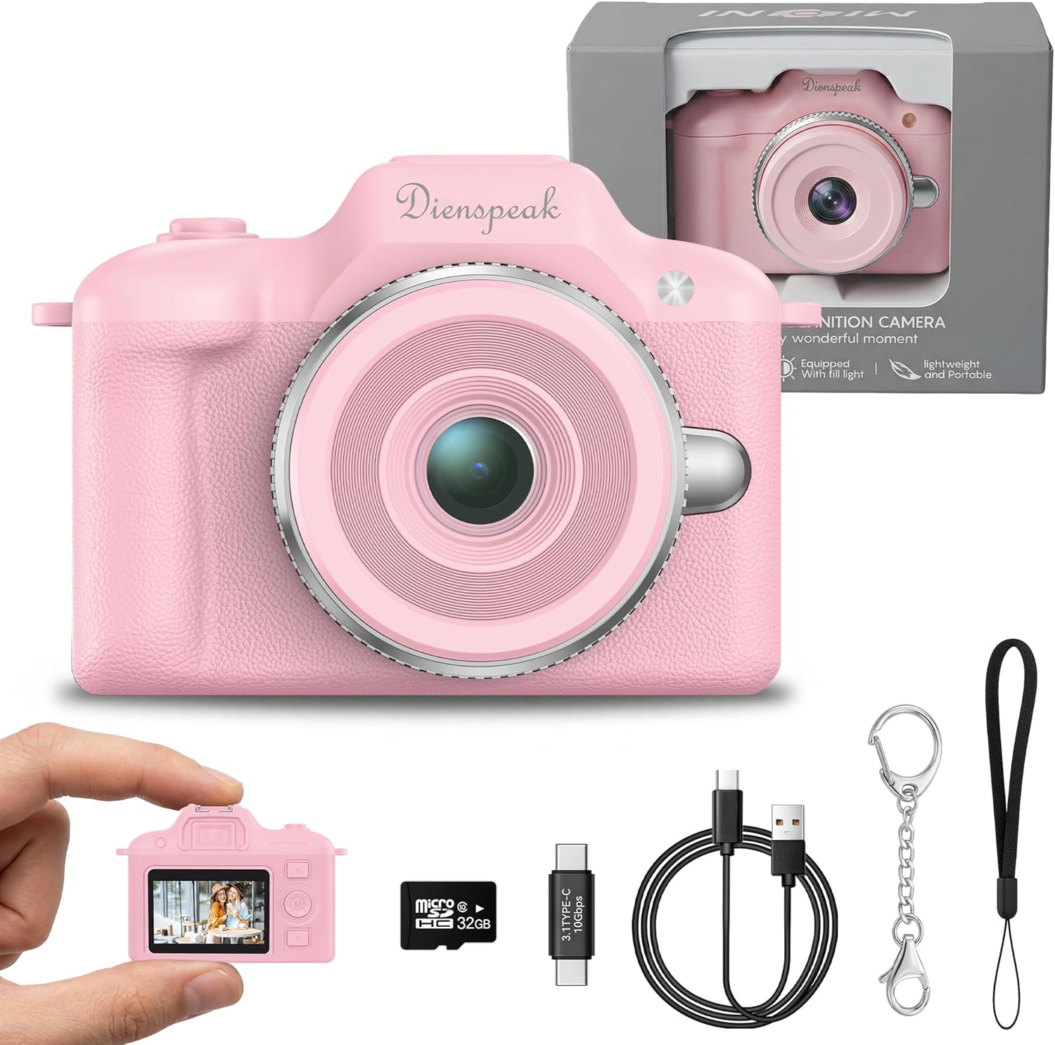Retro Keychain Camera, 1080P HD Mini Digital Pocket Camera with 32GB Card
