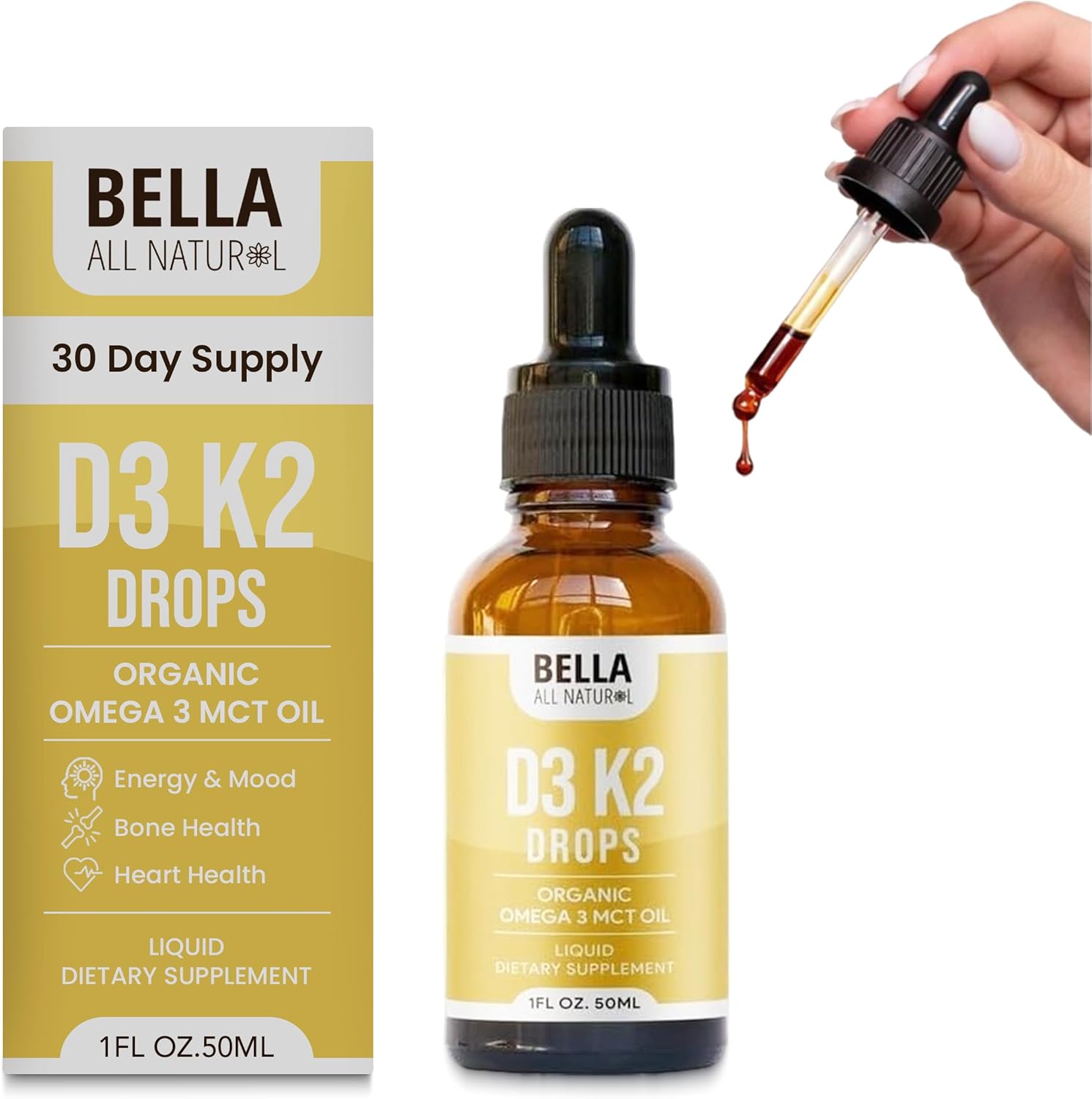 Bella All Natural Vitamin D3 K2 Liquid Drops 5000 IU (Unflavored)