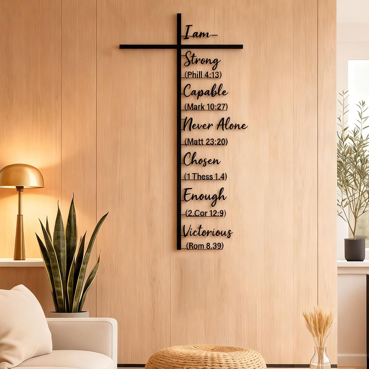Metal Cross Wall Art with Inspiring Bible Verse – “I Am Strong, Powerful