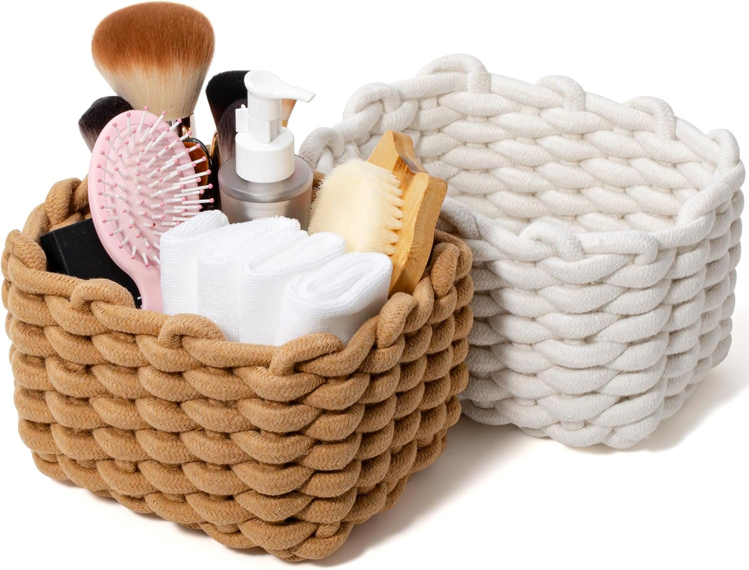 Storage Baskets 2 Pack, Macrame Woven Decorative Baskets for Vanity