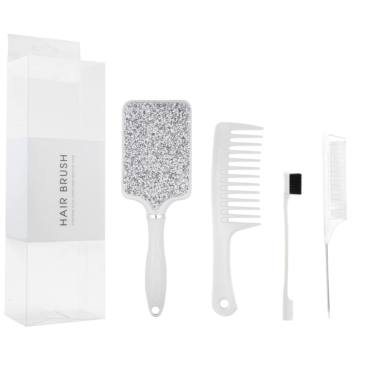 Hair Brush Set Anti Static Massage Vent Hair Brush Detangling Brush with Wide-toothed-comb Paddle Brush for Women Men Silver Diamond Colour…