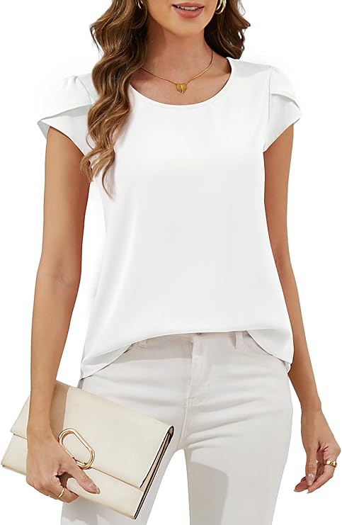 Women’s Chiffon Blouse Petal Short Sleeve Business Casual Elegant Top
