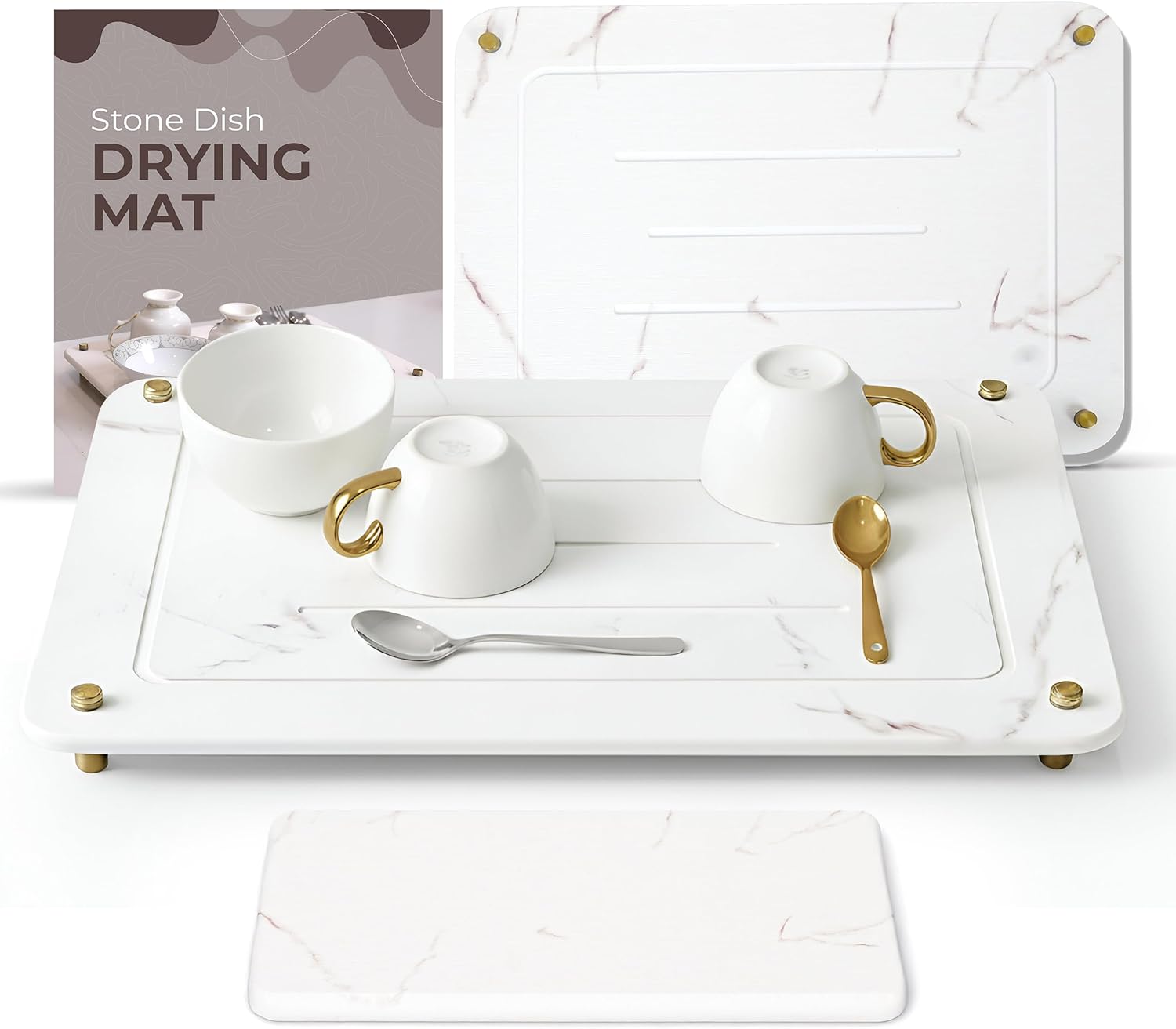 Stone Drying Mat for Kitchen Counter + Sink Caddy | 15.7″x11.8