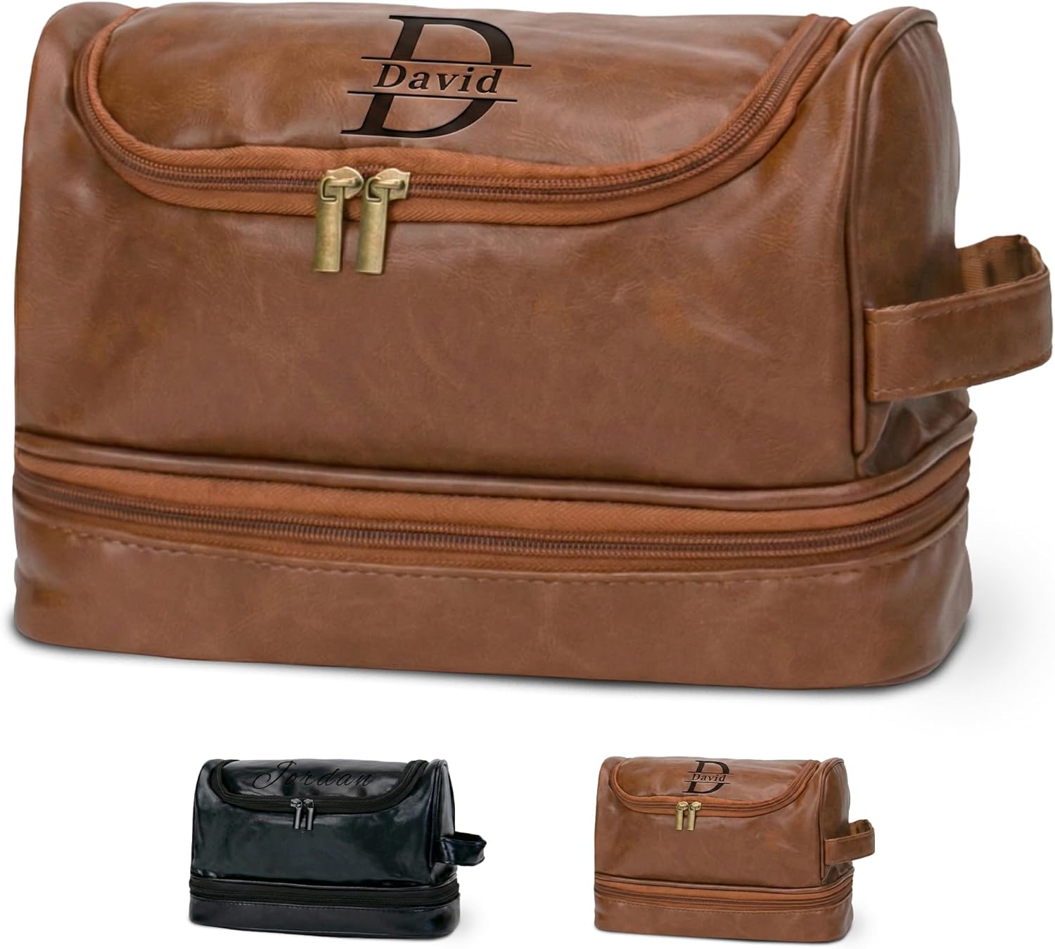 RAFFINO Personalized Leather Toiletry Bag for Men – Valentine
